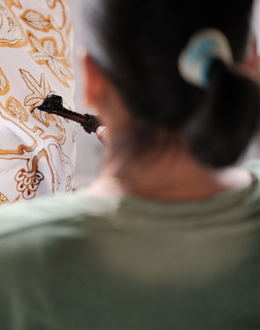 Batik Tulis is completely drawn by hand using a canting, which is a small pen that drips hot wax onto fabric. They use wax to block the fabric from absorbing colour, so only unwashed (white) areas take on the color. The cloth is then dyed, dried, dyed again for darker colors and finally the wax is removed with hot water and soda. This whole process is repeated for every new color, revealing the detailed patterns each time. This method is incredibly detailed and time-intensive, often taking weeks to complete. Every piece is one-of-a-kind, carrying the natural flow and imperfections of the artisan.